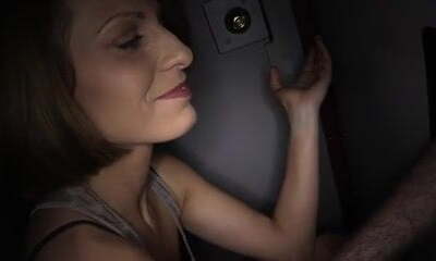She jerks a boy off then nails him through a gloryhole