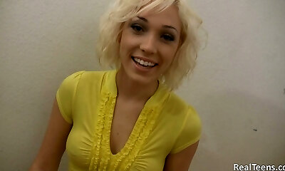 Amateur petite Kasey Warner plays with her hair twat for you
