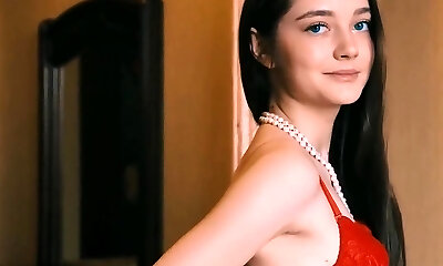Maya Konovalenko is all alone and she undresses to pet her own wet poon