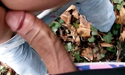 Public wanking with cum shot