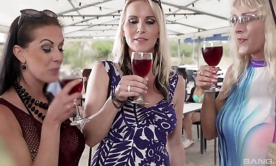 Horny shameless bikini bitches twerk their backsides during outdoor party