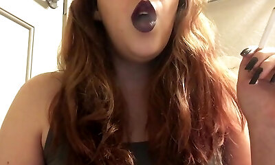 Sexy Chubby Goth Teen Smoking Red Cork Peak 100 Cigarette in Purple Lipstick