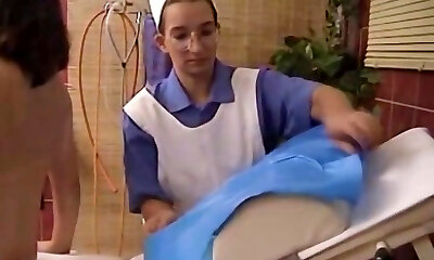 The masseur could not resist during the oil massage and fucked the greased redhead
